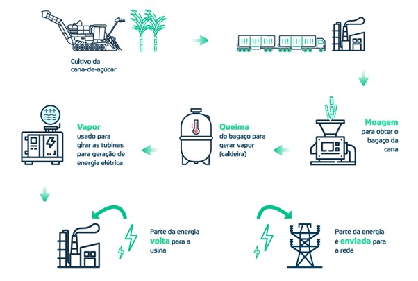 A produção de eletricidade para consumo próprio é muito comum em usinas de açúcar e álcool. Muitas chegam a ser autossuficientes, ou seja, independem de fontes externas de energia. Fernando Alonso Oliveira, engenheiro agrônomo e representante do Grupo Econômico Balbo, expõe que a utilização da biomassa para geração de energia interna sempre ocorreu no setor, entretanto denota que a evolução tecnológica dos equipamentos passou a permitir que fosse produzido um excedente de energia passível de ser comercializada.